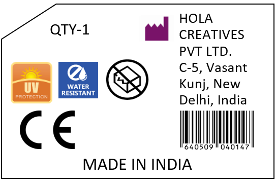 Q. How do physically sold umbrellas reach me? Even if you’re using our store-bought umbrella, that haven’t purchased it online, you may still be interested in finding out how the product reaches you. Our products, continuously made, (quantity is determined on the basis of our empirical demand forecasted) are transferred to our agents, who sell the products to wholesalers, who further sell to retailers. We adopt this three-level delivery channel so that we can make our products ubiquitously and abundantly available, at a store near you. Either wholesalers arrange for the transport of the products, or we deliver it to their stores, with the help of our friends at Blue Dart. We also avail the warehousing services of Blue Dart, and all our products are transported from our factories to their storage units, so that we can efficiently produce to the full capacity of our factories, without worrying about shortage of space. Q. What is a sign of an authentic Hoverella? You will find the following tag attached to every authentic Hoverella.