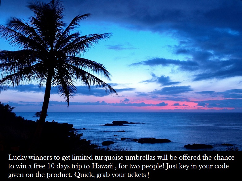- Lucky winners to get limited turquoise hoverellas will be offered the chance to win a free 10 days trip to Hawaii, for two people! Just key in your code given on the product. Quick, grab your tickets!